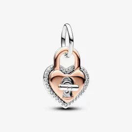 Шарм Pandora Two-tone Twistable Heart Padlock Double Dangle